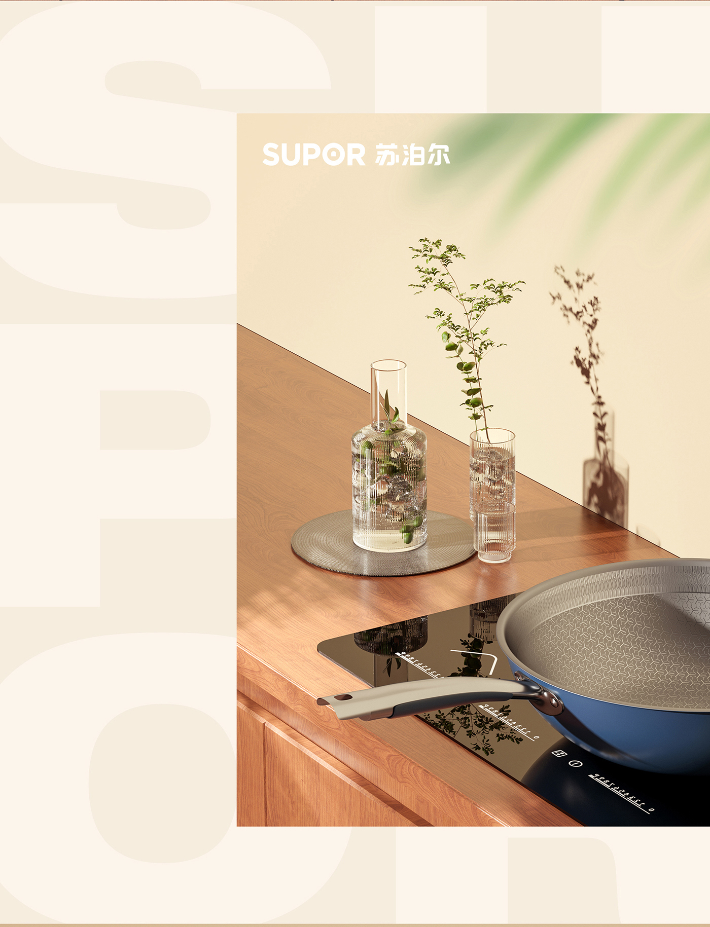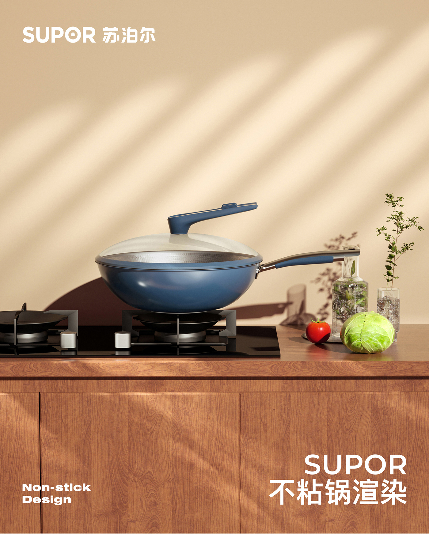 厨具平底锅白底图和场景渲染
